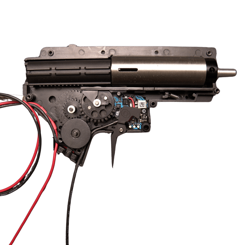 Este gearbox ha sido modificado internamente para mejorar el rendimiento general, optimizando su funcionamiento y ofreciendo una experiencia de tiro más eficiente y estable.