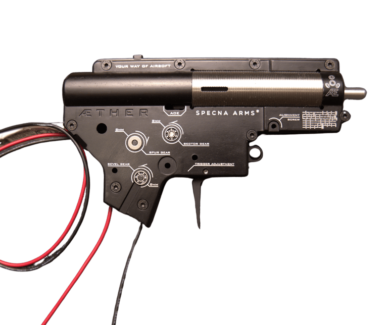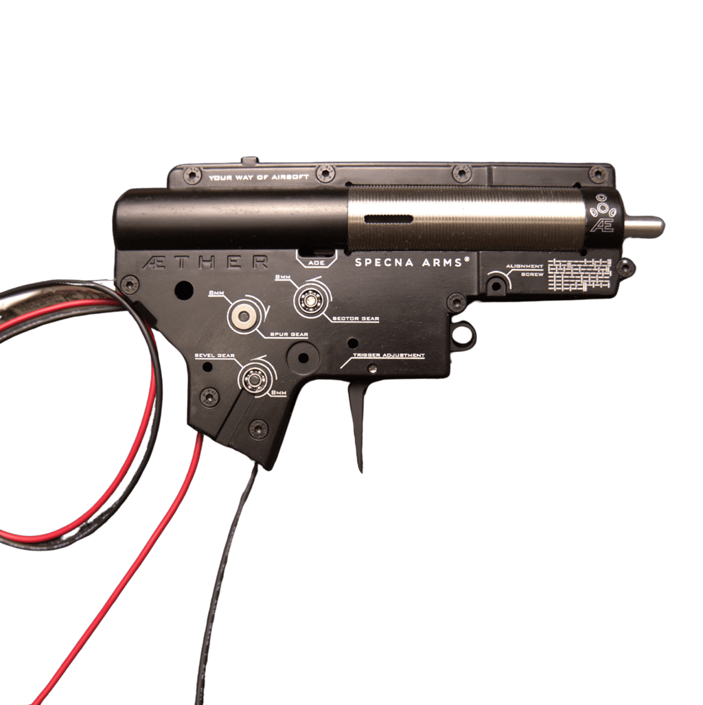 Gearbox Aether de airsoft de la marca Specna Arms, reconocido por su alta resistencia, durabilidad y fiabilidad, ideal como base sólida para réplicas de alto rendimiento.
