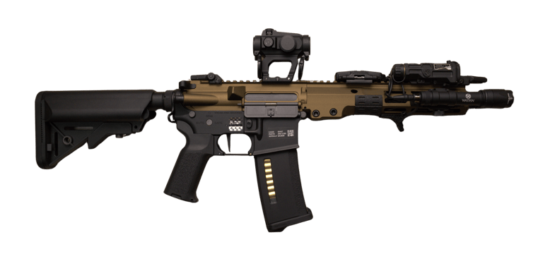 Incorpora una centralita electrónica de la marca Gate, que permite configurar hasta el último detalle de la réplica, consiguiendo una mayor respuesta de tiro, mayor sensibilidad en el gatillo y un control total del sistema.