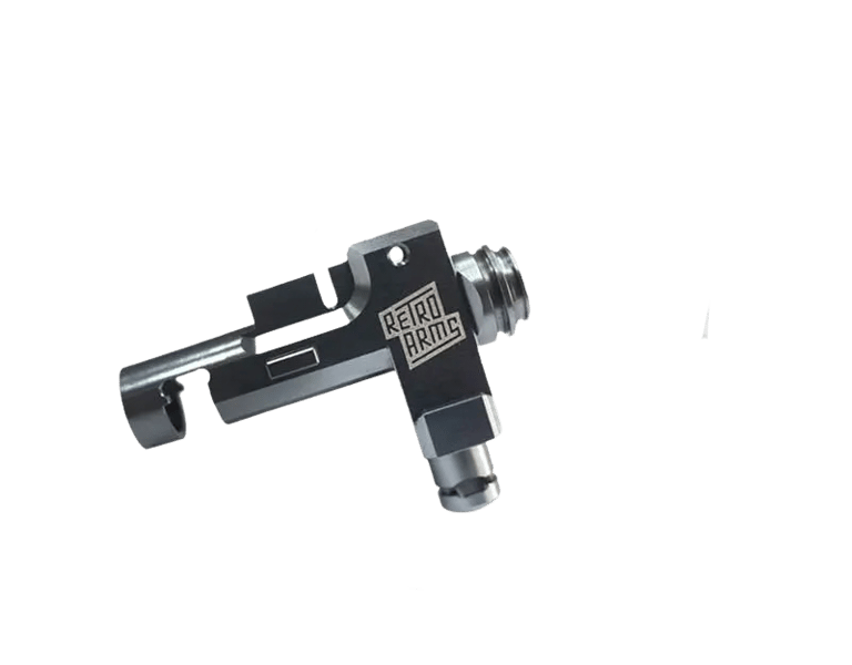La cámara hop-up Retro Arms es una cámara para réplicas AEG de airsoft diseñada para mejorar la precisión, el sellado de aire y la alimentación de BBs. Está fabricada en aluminio aeronáutico 7075 mecanizado CNC, lo que ofrece alta precisión y gran resistencia.