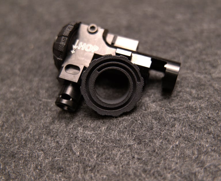 La rueda de hop-up de diseño propio, creada específicamente para cámaras RetroArms. Ofrece una regulación más precisa, con un rango de ajuste ampliado tanto en mínimo y máximo. Incorpora numeración para facilitar la selección del hop-up, mejor agarre y un sistema TDC con leva que permite una regulación más cómoda y exacta. Además, incluye un muelle de recuperación que mejora la estabilidad entre disparos.