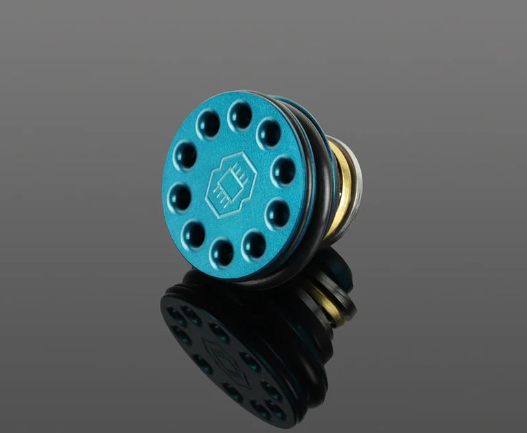 La GATE EON Power Hybrid es una cabeza de pistón para réplicas AEG de airsoft, fabricada en aluminio CNC 7075 para ofrecer alta resistencia y durabilidad. Incorpora orificios de ventilación que mejoran la expansión del O-ring y el sellado de aire, aumentando la consistencia en los disparos.