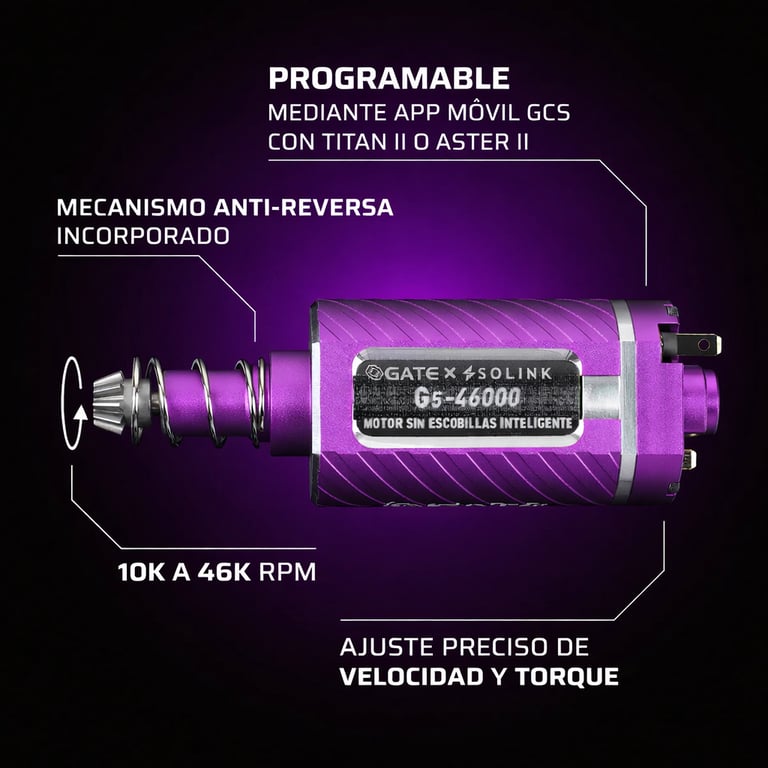 Este motor brushles permite regular las rpm y los tpa, ofreciendo un control excepcional. Conectar a la centralita Titan permite ajustar parámetros según tus necesidades y optimizar la eficiencia de tu réplica. Aunque mejora la respuesta del motor, también ajusta la potencia y el torque según el uso.